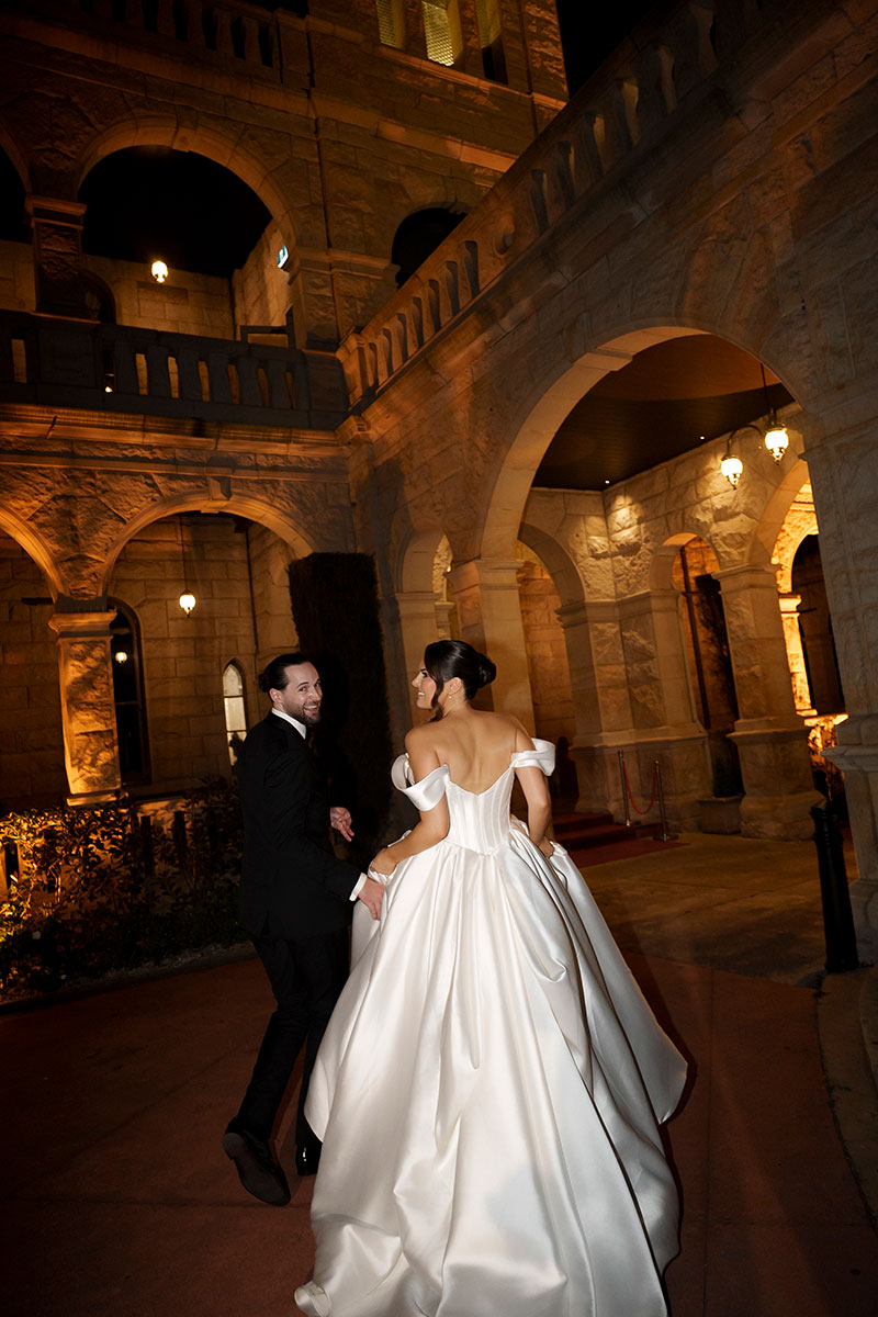 Immerse yourself in quiet luxury with a winter getaway wedding. The Villa Navarra offers a picturesque winter setting. Enjoy an overnight stay at The Villa Navarra’s lavish abode, The Attunga Chateau, for the ultimate retreat. Host your ceremony in the stables for a chic, tranquil and warm affair. Hold your reception in The Atrium with 360-degree views of lush, winter, verdant and rolling hills on acres of green land. Your wedding day will be a dream hidden away with lush greenery and the endless winter night.