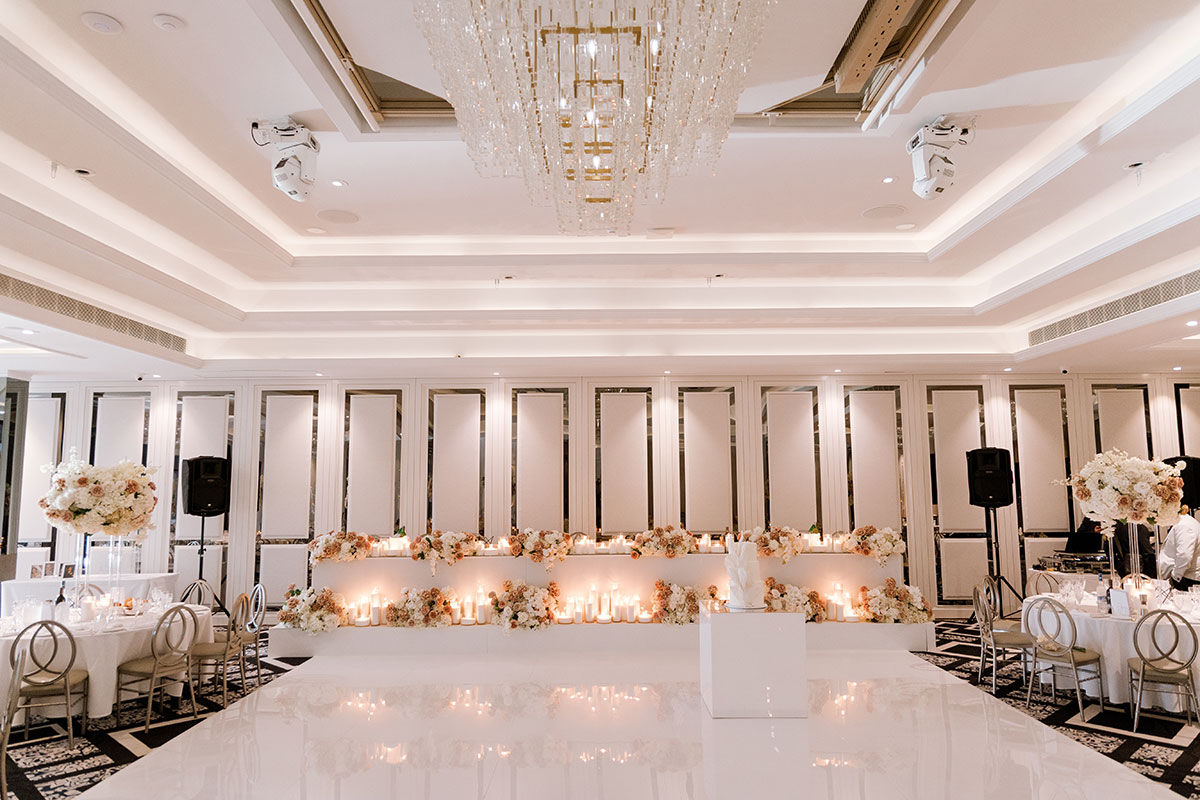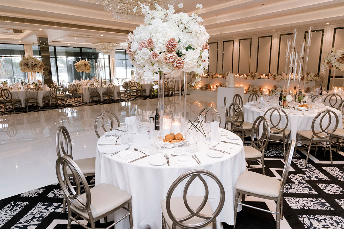The Deanah’s View Ballroom is created by combining the Deanah’s View and The Alexandra Lounge rooms, offering an exclusive and elegant entrance, lift access, and a balcony. The grandeur of the ballroom, paired with the spectacular views, makes it the perfect setting for an unforgettable wedding, providing a breathtaking backdrop for your special day.